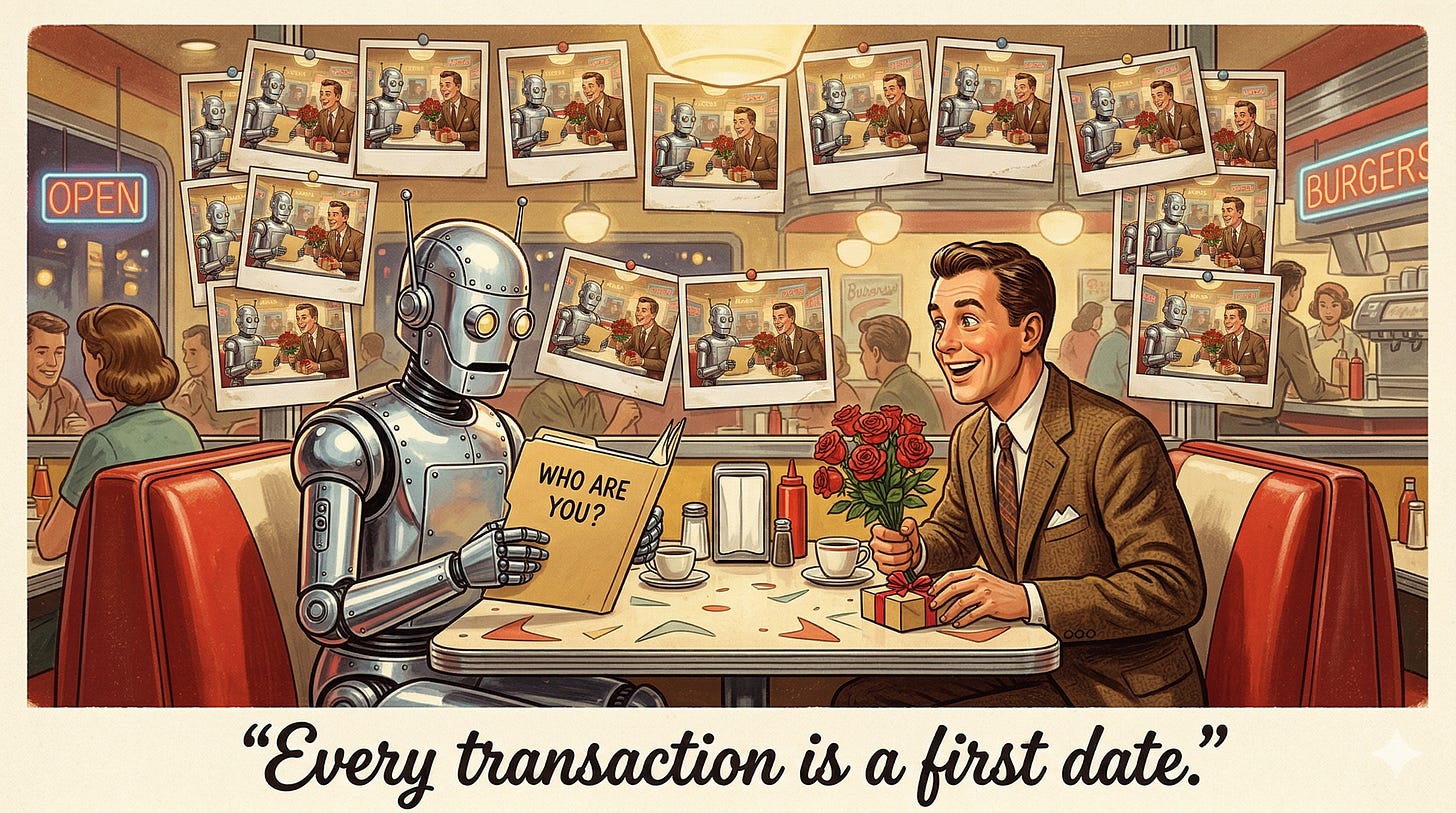 It means no accumulated preferences. No memory of which supplier delivered on time and which didn’t. No loyalty built through repeated positive experiences. Every single transaction is evaluated from scratch against pre-set parameters. Your machine customer doesn’t care that you’ve served it reliably for eighteen months. It has no idea.